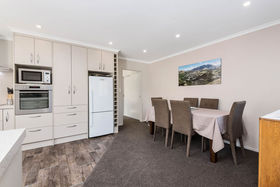 The Crib is a cosy 3 bedroom Arrowtown holiday home. With modern finishings and WiFi, this home is a great base for groups or families looking for their next refreshing getaway. This Arrowtown holiday home includes comfortable, open plan living that flows onto an outdoor courtyard. There is ample room to relax in the sun and enjoy the tranquil setting, or stay toasty indoors by the electric fireplace during colder months. The interior is clean and modern with comfortable beds in all rooms. Perfect for those looking to catch a good night sleep after a hard day on the ski slopes or a day of exploring. The home also features WiFi, perfect for those looking to wow their friends with all the amazing pictures from your adventures. This home is perfectly situated in the heart of Arrowtown. You're just a short 4 minute walk to main strip in Arrowtown, where you will find an abundance of restaurants & cafes. The home is also just a short 25 minute from the popular Coronet Ski Peak, and a 20 minute drive from the popular tourist hotspot Queenstown. Comfort, location and tranquility. Make your next Arrowtown escape one to remember at The Crib. See more at https://www.bachcare.co.nz/holiday-homes-accommodation/queenstown-wanaka/arrowtown/the-crib/5026 Bedroom Configuration Bedroom 1 (Level 1): 1 Cal. King Bedroom 2 (Level 1): 2 King Single Bedroom 3 (Level 1): 2 Singles Sunroom 1 (Level 1): 1 Singles Bathroom Configuration Bathroom 1 (Level 1): 1 Basin, 1 Toilet, 1 Shower Bathroom 2 (Level 1): 1 Basin, 1 Toilet, 1 Shower Linen available at additional charge Available at this property for $25 per person. You'll see the option for our linen service in the 'Add-Ons' section during your booking. Special Conditions This home has a single bed located in an open sunroom. This bed is only suitable for a child and is not in a private room. To help you enjoy your last day, and ensure the property is in top condition for every guest, a mandatory departure clean applies to this property. The fee for this is additional to the nightly rate, and pricing is available when making your booking, subject to your group size. Amenities BBQ Clothesline Coffee machine Coffee plunger Deck chairs Dishwasher Driveway (private) Dryer Electric blankets Fenced (fully) Fenced (partially) Fireplace (gas / electric) Freeview Freezer Fridge Fridge / Freezer Garden (private) Hair dryer Heat pump Heated towel rails Iron Microwave Mobile Cellphone Reception Outdoor table / chairs Oven Parking (off-street) Parking (on-street) SKY TV (Basic) SKY TV (Sports) Stove / Cookware Toast sandwich maker Toaster TV Underfloor heating Washing machine WIFI